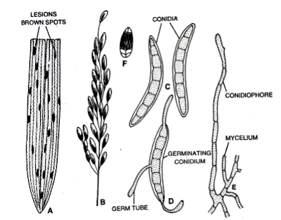 Disease is primarily seed borned. The fungus is found as dormant mycelium in the husk and on the kernel and often it infects the germinating grain. Secondary infection is caused by air borne conidia. Generally, such conidia are produced either from primary infected plants or from other sources.