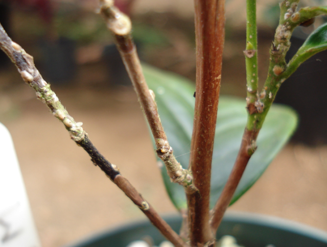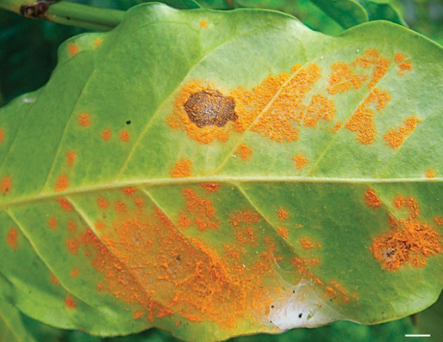 Causal organism: Cephaleurous parasiticus (Algal disease).
