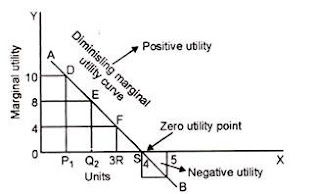 It will be seen from the table that the total utility of a commodity is maximum (i.e., 70) when the marginal utility is zero (i.e., at the 6th unit).